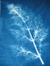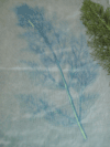 | • Blurry prints: This is a contact printing process. Transparencies and negatives must be firmly in contact with the fabric. Pin carefully, or use a piece of heavy glass to press design elements to fabric. Board must be perpendicular to the sun for even exposure. Printing in cloudy weather does not provide distinct shadows • Water spots: Caused by wet hands or wet leaves dripping on the fabric or paper before or during the process. • Streaks: Brown on back of print, dark line on front. Fabric or paper not well rinsed. Rinse again immediately. |